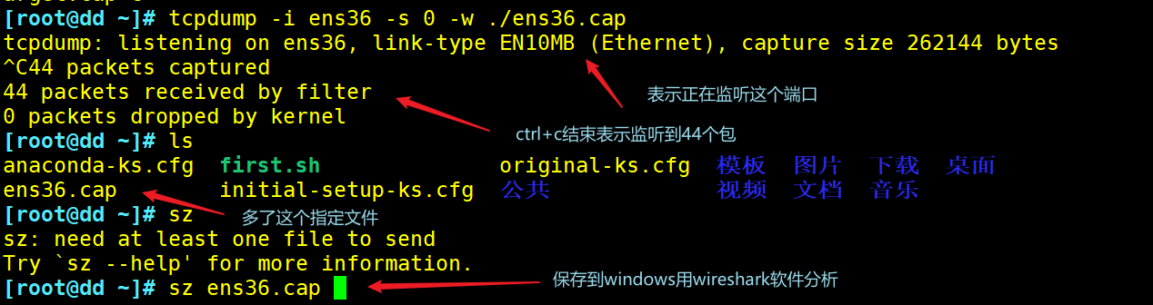 最后使用sz命令导入到windows系统中使用Wireshark进行分析