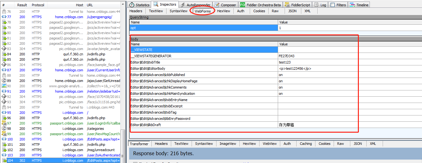 先打开我的随笔,手动输入内容后,打开fiddler抓包