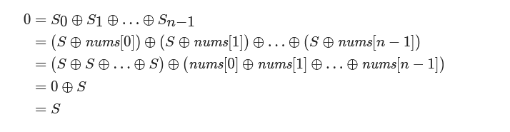 将 Si=S⊕nums[i] 代入上式,并根据异或运算的交换律和结合律化简,有