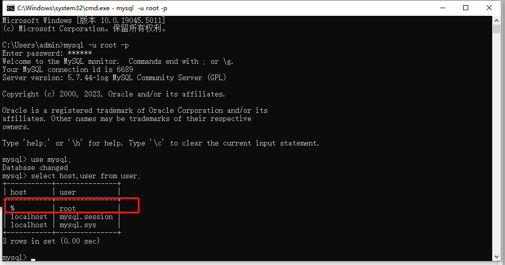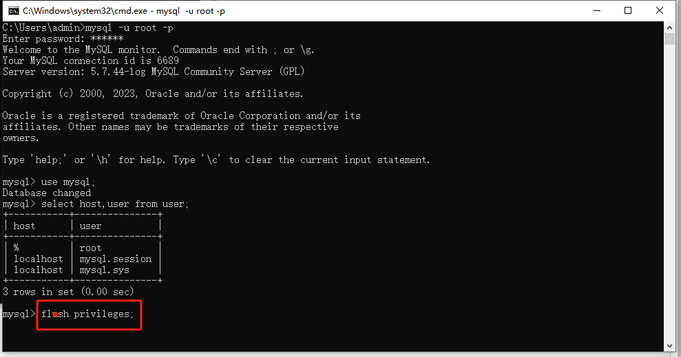 update user set host ='%' where user = 'root'. #将root用户host设置为%