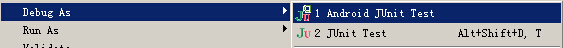 点击项目——>右键——>Debug As——>Android Junit Test
