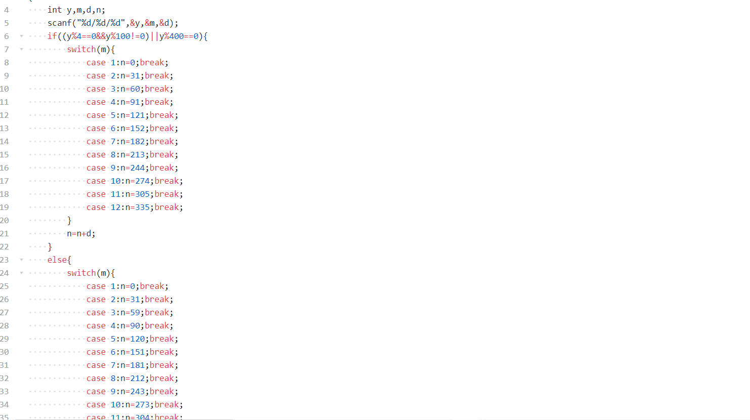 本题要求编写程序计算某年某月某日是该年中的第几天。