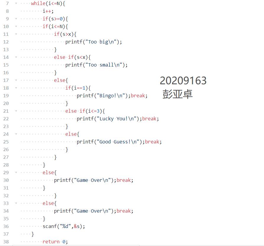 部分正确2.没有考虑N次之后猜对,添加if-else条件i>N结束程序;