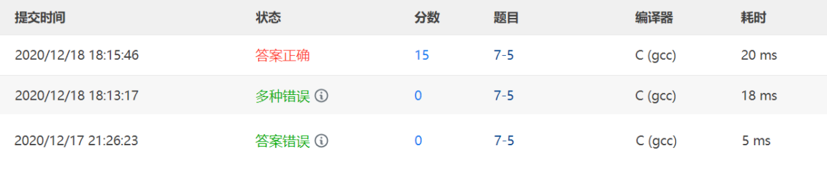 1.2.4 PTA提交列表及说明
