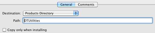 We add a new “Copy Files Build Phase” and set it up so that our header is copied. We want the header to go into our subfolder of the products folder.