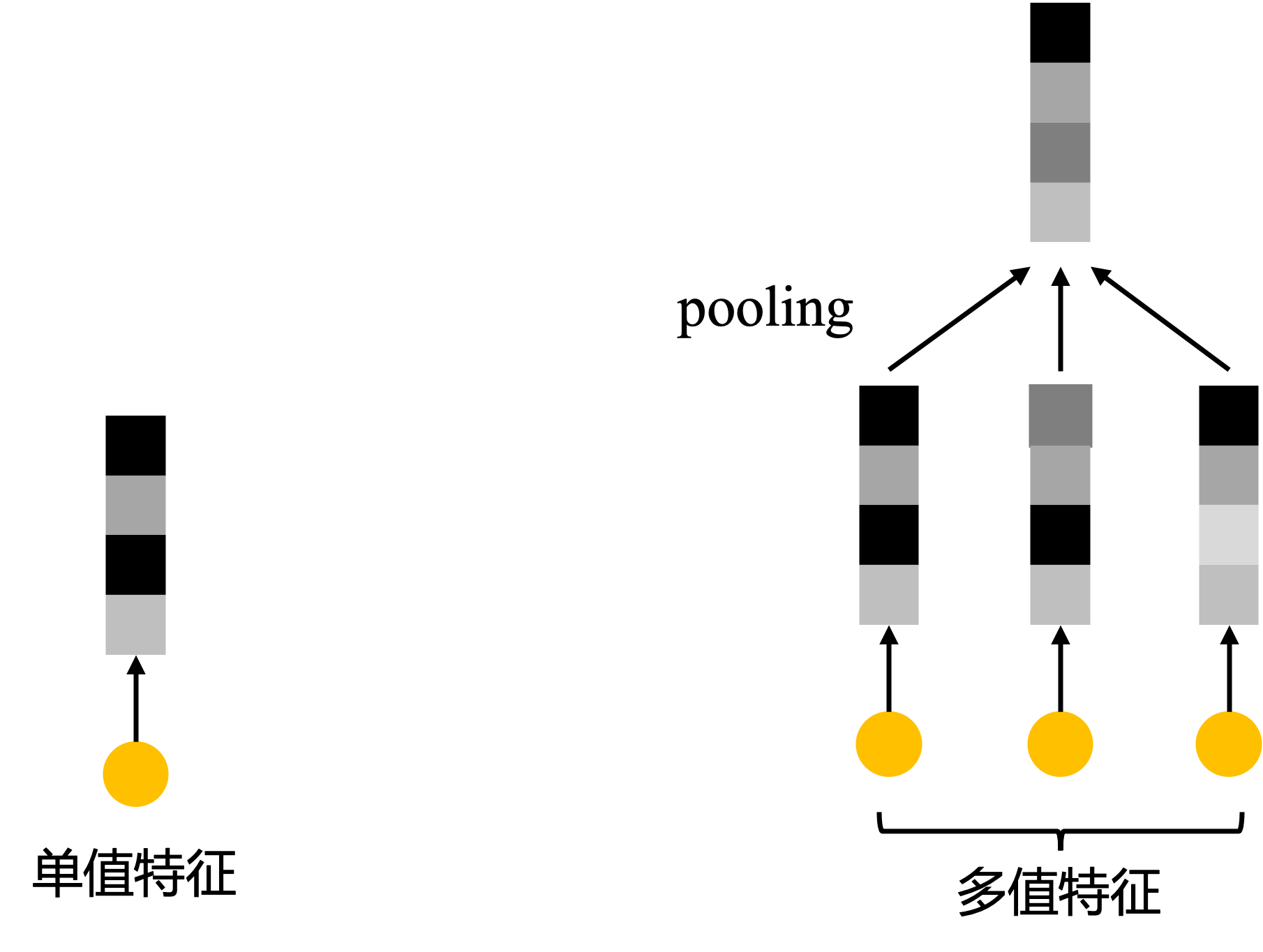 在embedding阶段,所有的离散特征都要被映射成一个固定长度的低维稠密向量。离散特征一般有单值特征和多值特征,分别要做one-hot编码和multi-hot编码,单值特征没什么问题,直接映射成embedding向量即可,而对于多值特征,比如:用户点击过的item序列,用户点击过item类目的序列,通常的操作都是每个item映射成一个embedding向量,然后做一个sum/average pooling,最终得到一个embedding向量。