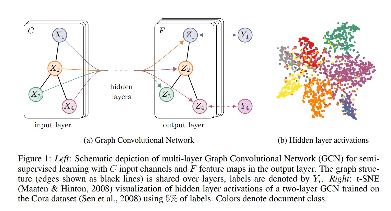 GCN定义了一个两层的模型,中间隐藏的节点个数可以自设,后面输出层可以结合具体数据集类别设置使用,当然也可以跟训练类别设置不一致,只需要在后面接一个分类器即可(后再接一个全连接层)。