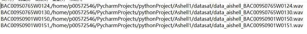 wav.scp 文件保存了语音编号和该语音在系统中的绝对路径,该文件的作用在于将语音编号和该语音的绝对路径对应起来,使得在声学特征提取以及数据增强阶段能够访问到该条语音,进而对语音进行处理。