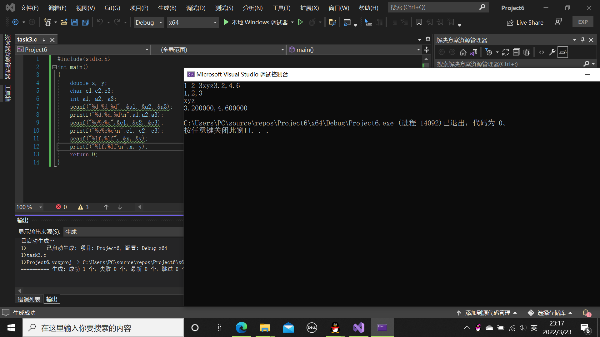#include<stdio.h> int main() { double x, y; char c1,c2,c3; int a1, a2, a3; scanf("%d %d %d", &a1, &a2, &a3); printf("%d,%d,%d\n",a1,a2,a3); scanf("%c%c%c",&c1, &c2, &c3); printf("%c%c%c\n",c1, c2, c3); scanf("%lf,%lf", &x, &y); printf("%lf,%lf\n",x, y); return 0; }