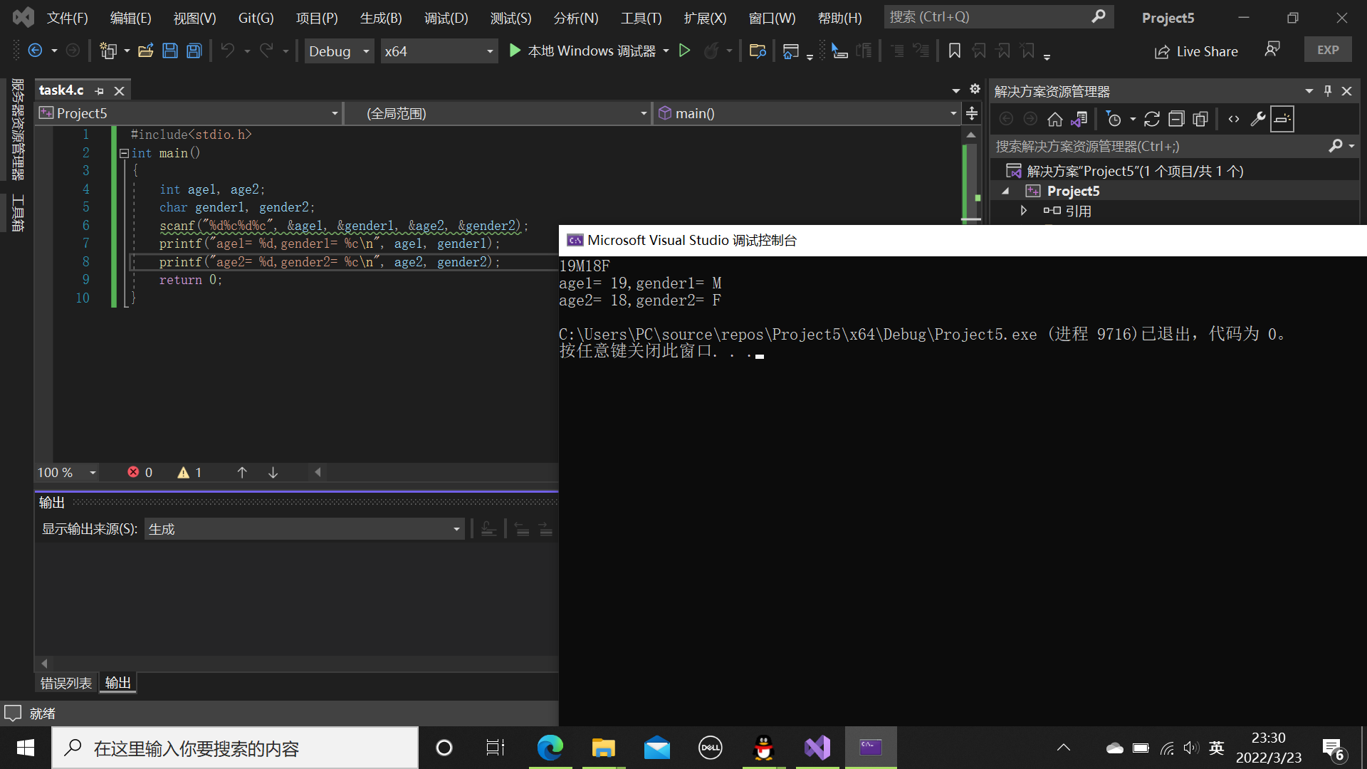 #include<stdio.h> int main() { int age1, age2; char gender1, gender2; scanf("%d%c%d%c", &age1, &gender1, &age2, &gender2); printf("age1= %d,gender1= %c\n", age1, gender1); printf("age2= %d,gender2= %c\n", age2, gender2); return 0; }