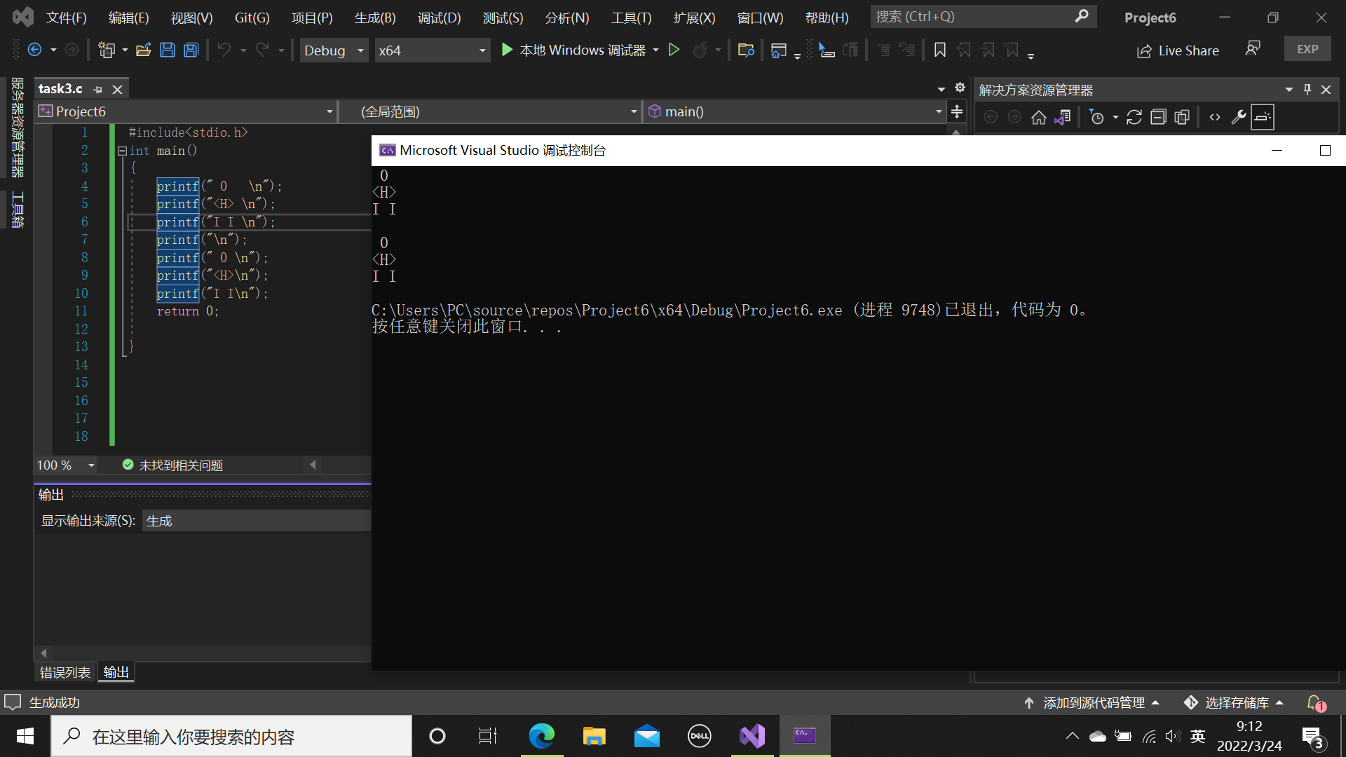 #include<stdio.h> int main() { printf(" 0 0\n"); printf("<H> <H>\n"); printf("I I I I\n"); return 0; }