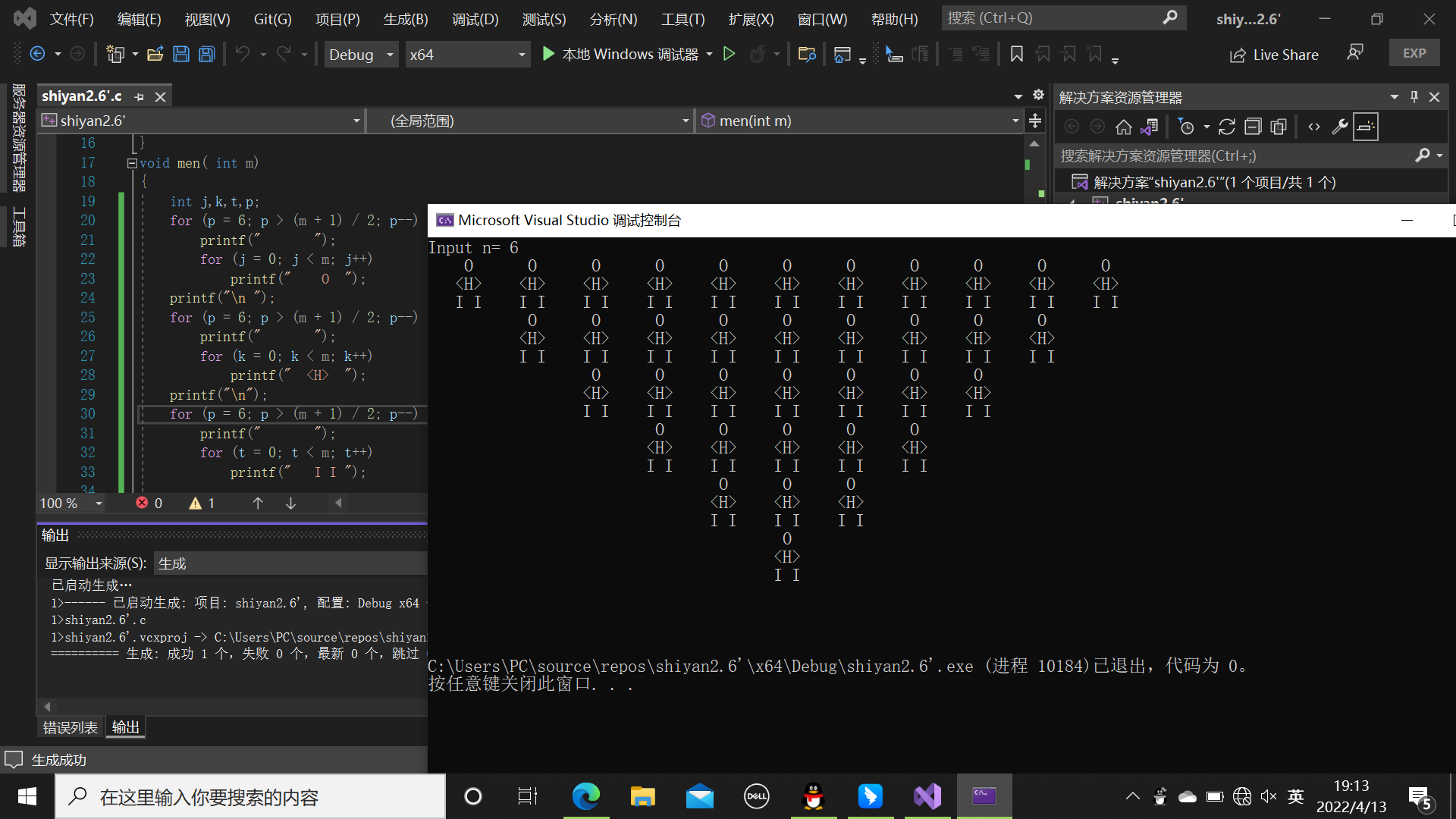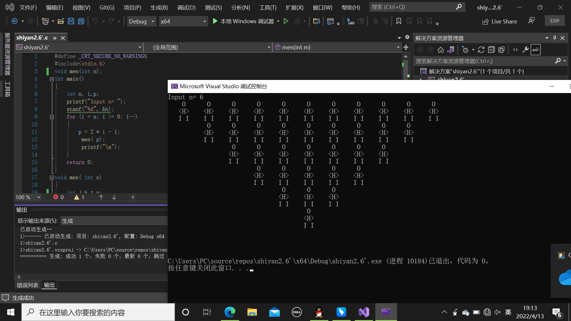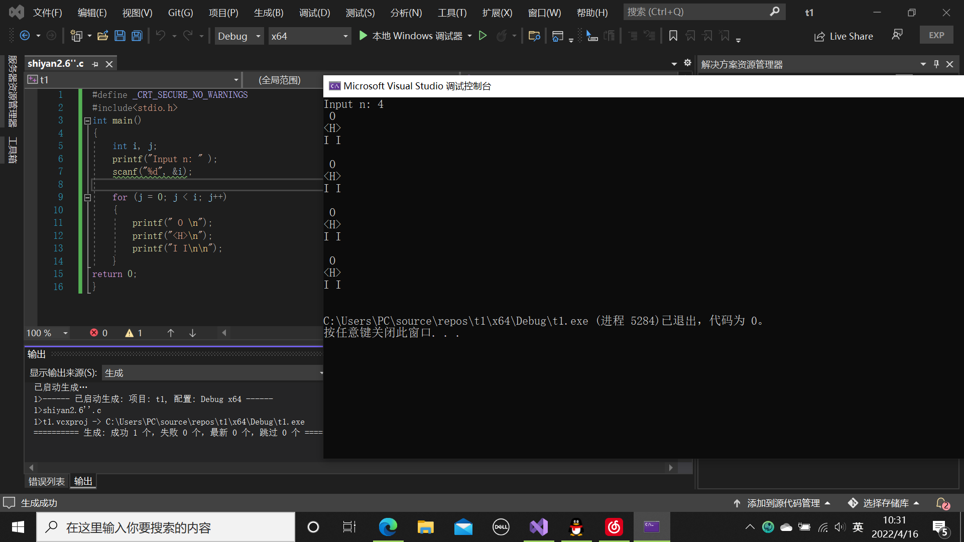 #define _CRT_SECURE_NO_WARNINGS #include<stdio.h> int main() { int i, n; printf("Input n: "); scanf("%d", &n); for (i = 0; i < n; i++) printf(" O "); printf("\n"); for(i=0;i<n;i++) printf("<H> "); printf("\n"); for(i=0;i<n;i++) printf("I I "); return 0; }