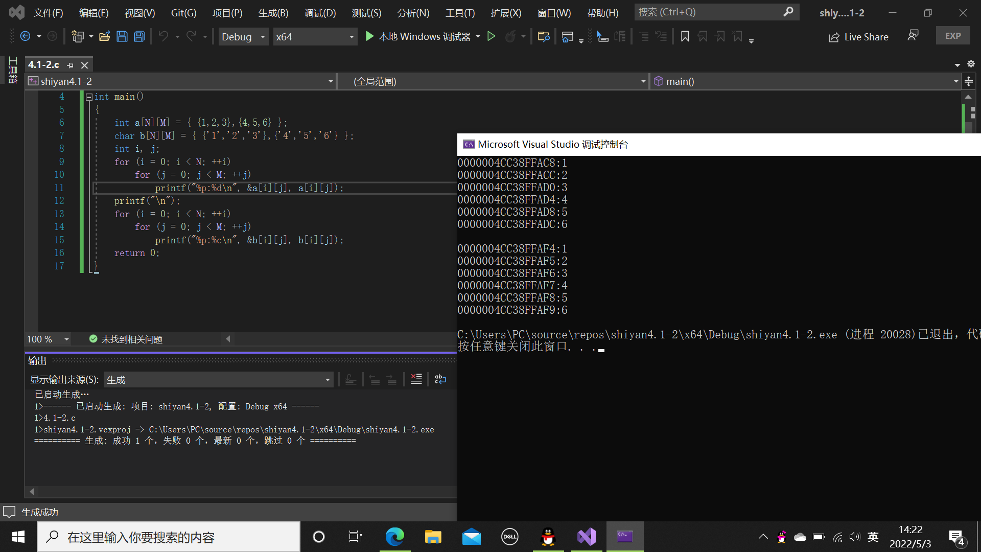 printf("%p:%c\n", &b[i][j], b[i][j]);