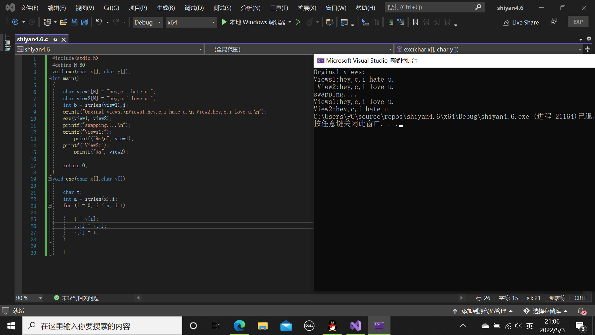 printf("Orginal views:\nViews1:hey,c,i hate u.\n View2:hey,c,i love u.\n");