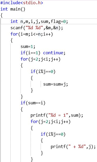 所谓完数就是该数恰好等于除自身外的因子之和。例如:6=1+2+3,其中1、2、3为6的因子。本题要求编写程序,找出任意两正整数m和n之间的所有完数