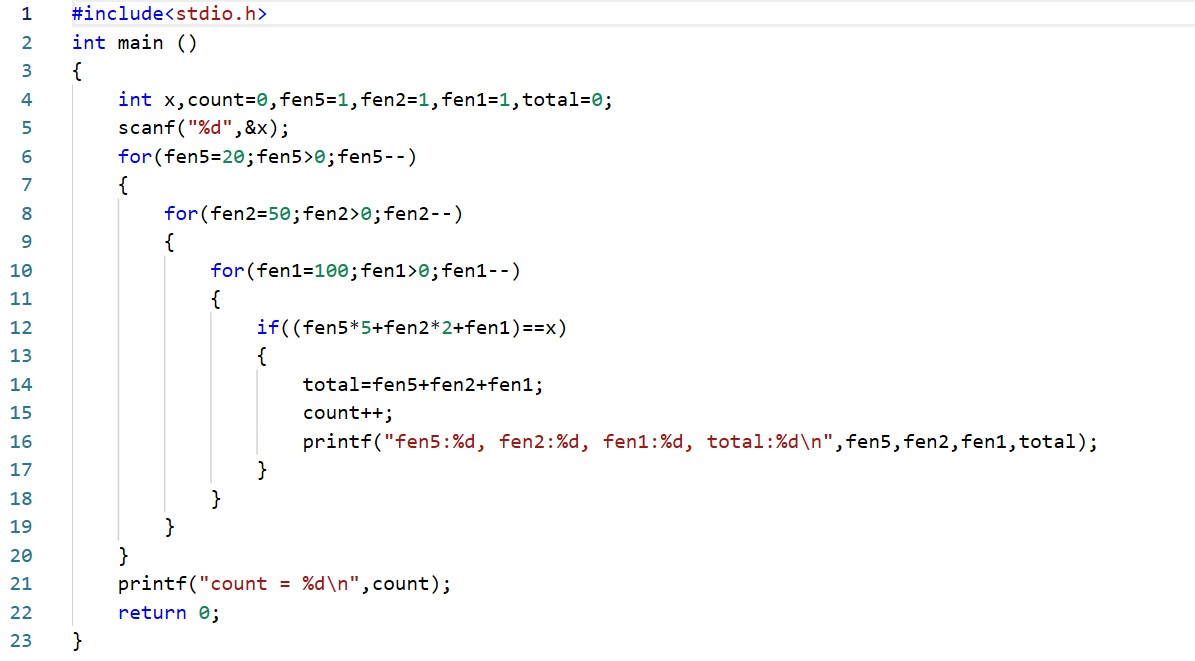 1他在定义变量时最初便给fen5, fen2, fen1定义了常量方便运算,我则是整形变量