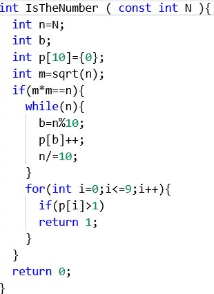 本题要求实现一个函数,判断任一给定整数N是否满足条件:它是完全平方数,又至少有两位数字相同,如144、676等