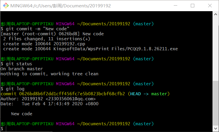 提交文件至代码仓库命令:git commit -m "文件"