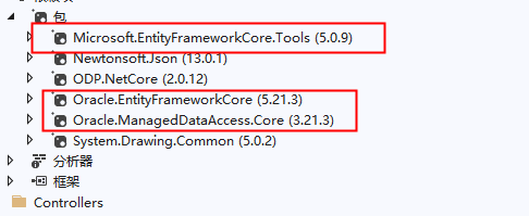 在程序包管理器控制台输入:Scaffold-DbContext "Data Source=(DESCRIPTION=(ADDRESS=(PROTOCOL=TCP)(HOST=IP地址)(PORT=1521))(CONNECT_DATA=(SERVER=DEDICATED)(SERVICE_NAME=服务名称)));User Id=用户名;Password=密码;" Oracle.EntityFrameworkCore -O Models -F
