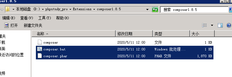 2,安装完后还要复制安装好目录下的composer.bat和composer.phar到站点使用的PHP版本对应目录下如:D:\phpstudy_pro\Extensions\php\php7.3.4nts