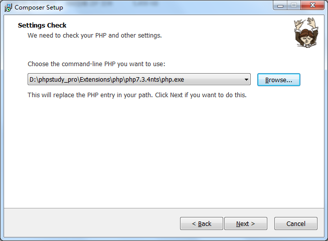 2,安装时会提示要选择所使用PHP对应版本所在的路径下的php.exe,选好后一直点next下一步,直至装完