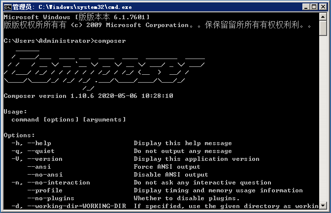 3,在laravelblog网站根目录运行cmd窗口,输入composer 回车,查看安装好后版本情况。