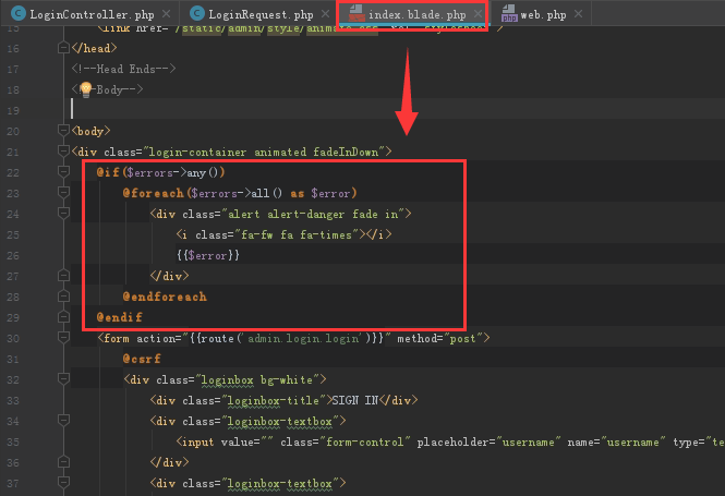 以上这段代码加在\resources\views\Admin\Login\index.blade.php