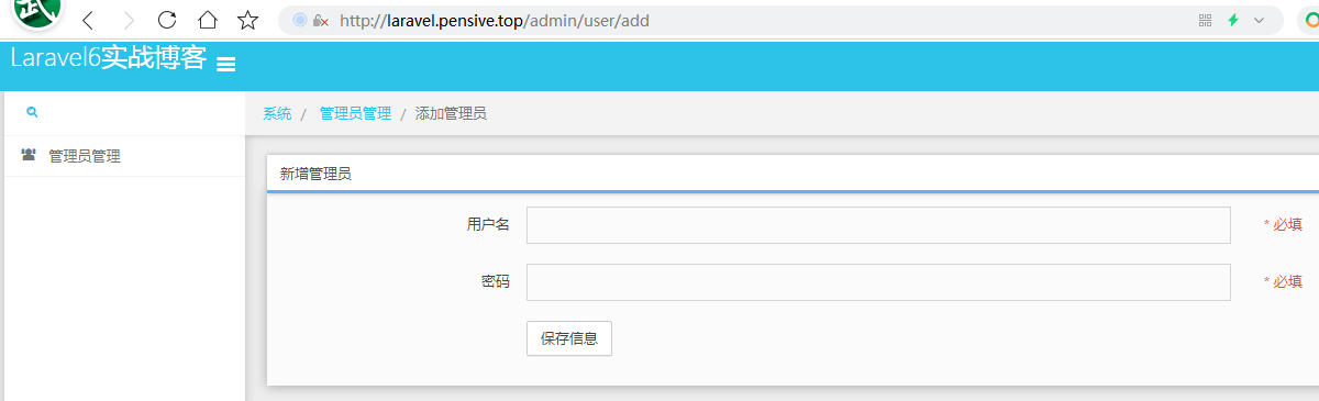 访问 http://laravel.pensive.top/admin/user/add 效果如下图