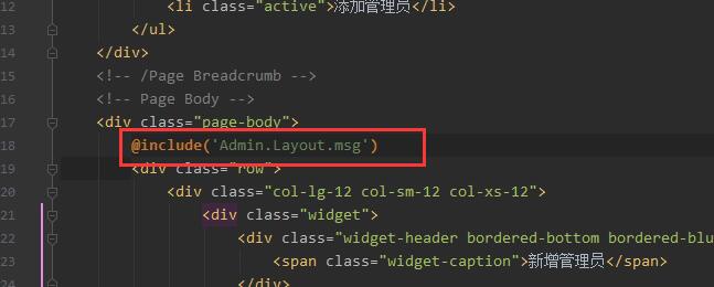 4,\resources\views\Admin\User\add.blade.php 如图所示出增加红框所示代码【引用提示信息模块】