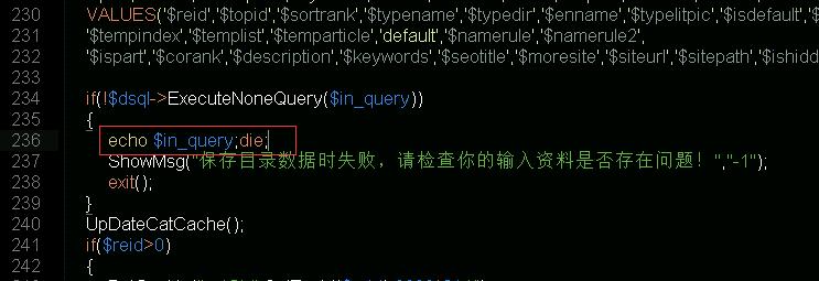 1、打开 /dede/catalog_add.php 找到 (大概在236行左右)