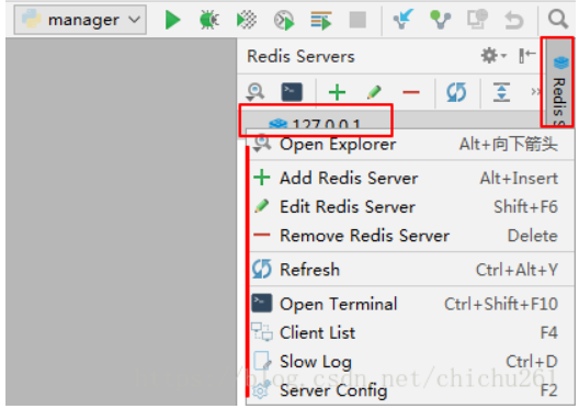 重启PyCharm之后,可以在右侧边栏看到Redis Server , 之后点击打开。