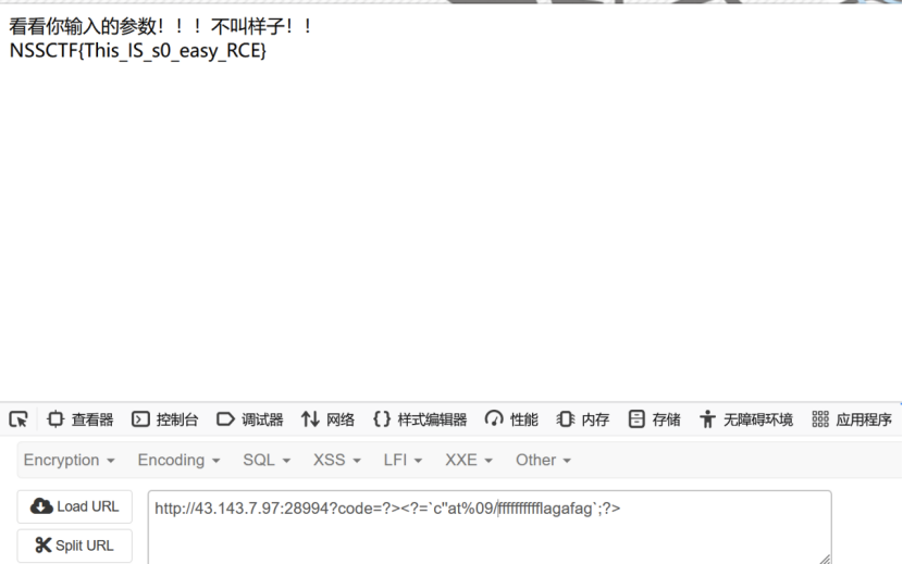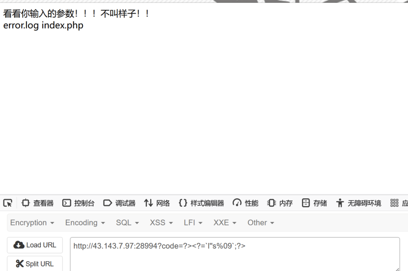linux特性(好像是php特性?),执行两个反引号括起来的内容,两个单引号连接左右的部分以绕过过滤的关键词,%09代替空格