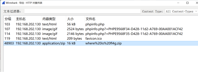 打开附件,一个流量包,放到wireshark里面导出http包,发现可疑压缩包