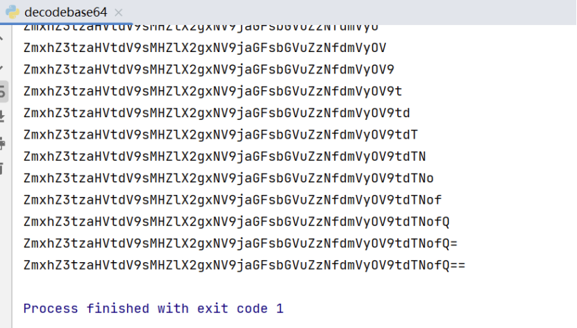 一长串base64,解码,最后有一段flag,但提交后并不正确