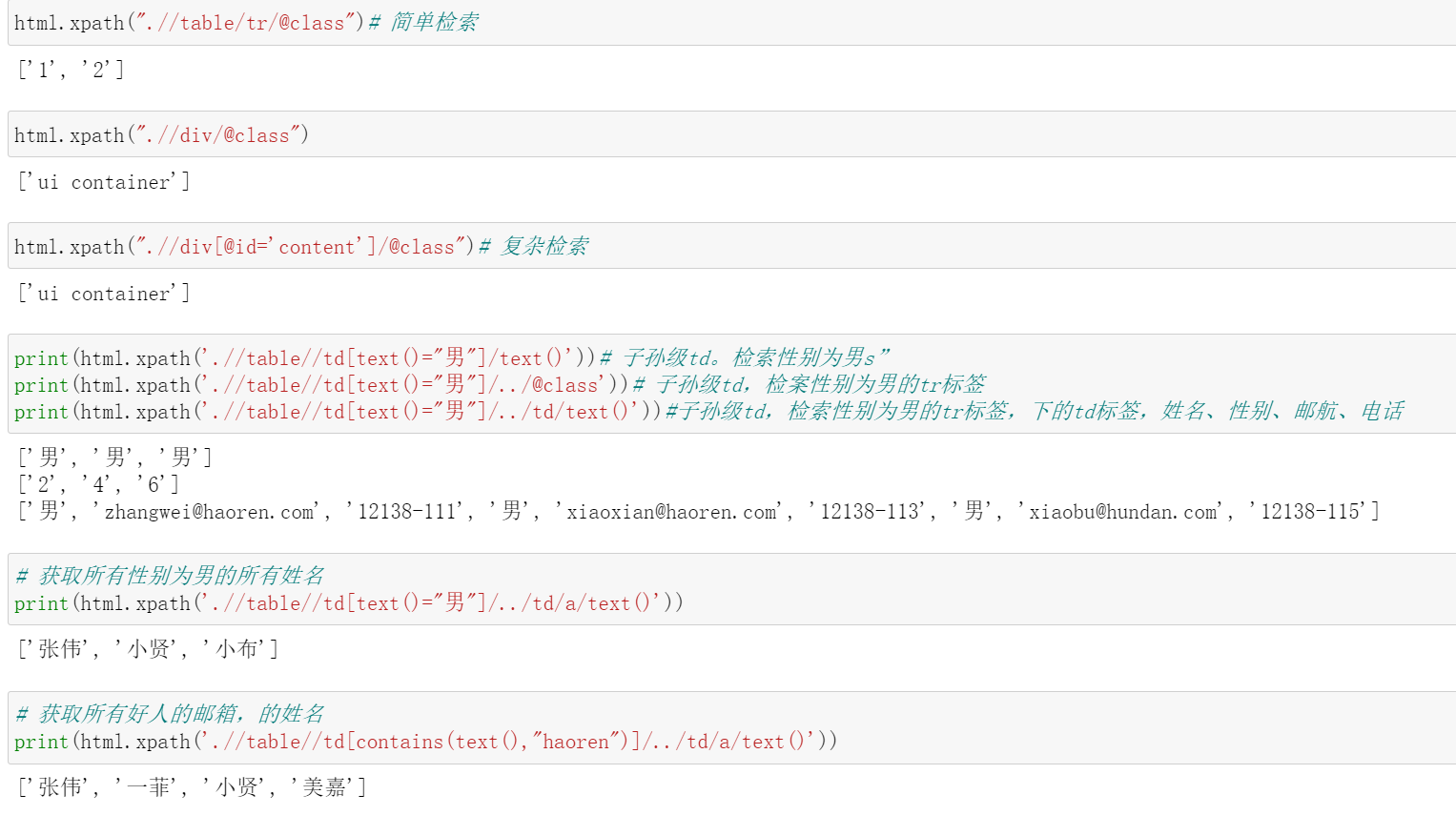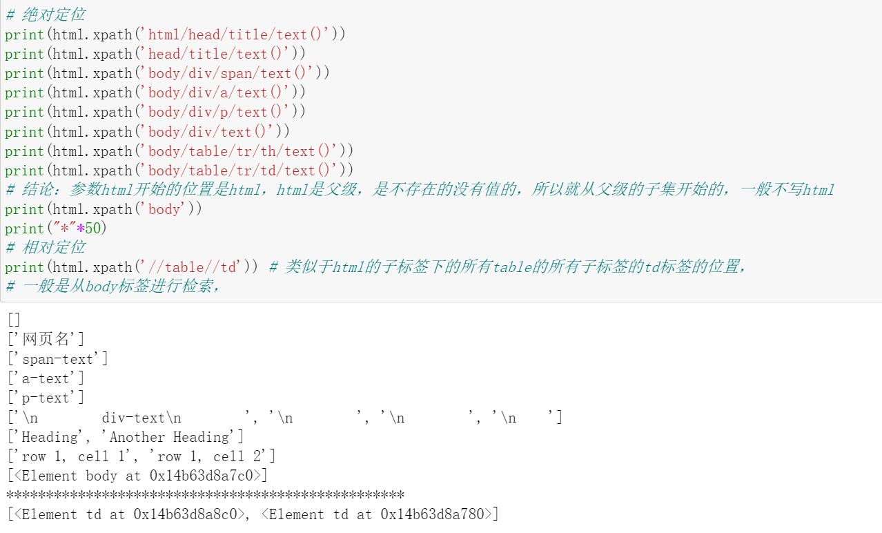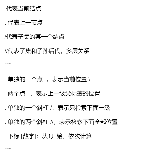 以上代码都在所给网站中找得到,复杂的xpath结点选择中的代码是已经复制好了的,可以当作一个小练习。