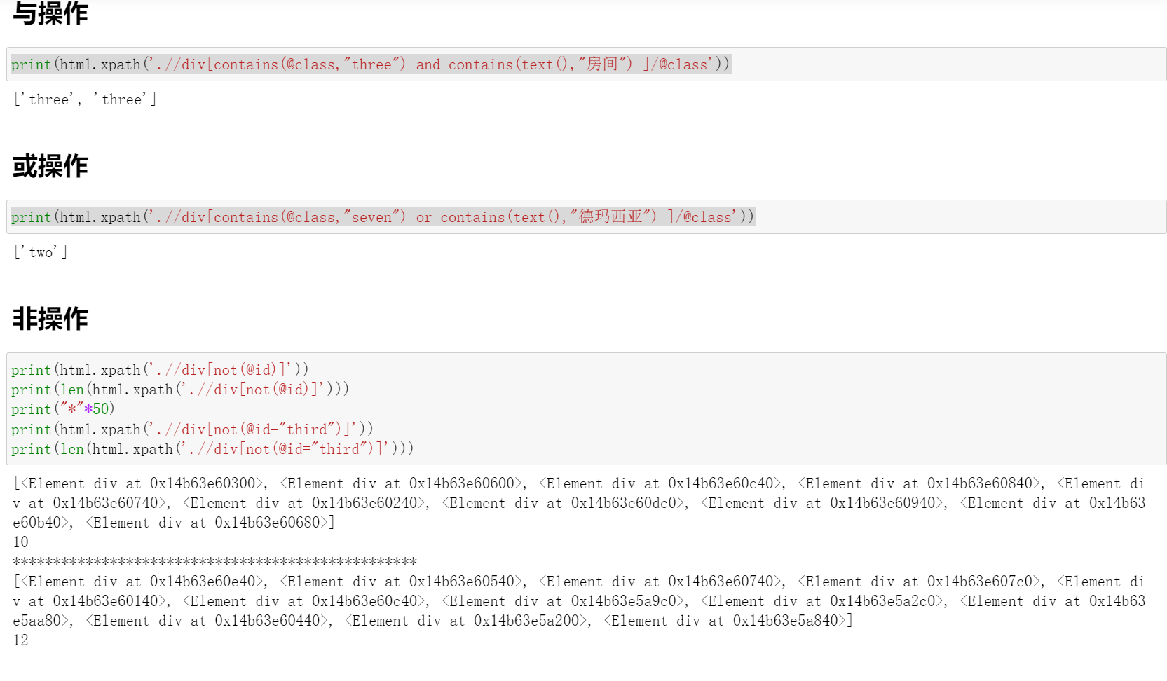 xpath的与或非