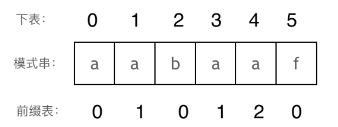 对于前6个字符的子串a a b a a f, 最长相同前后缀长度为0
