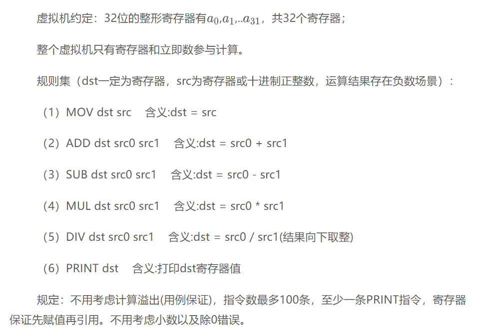 A.设计一种虚拟机解释器,解析并执行以下虚拟指令。