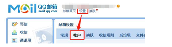 1. 打开QQ邮箱,点击“设置”->”账户”