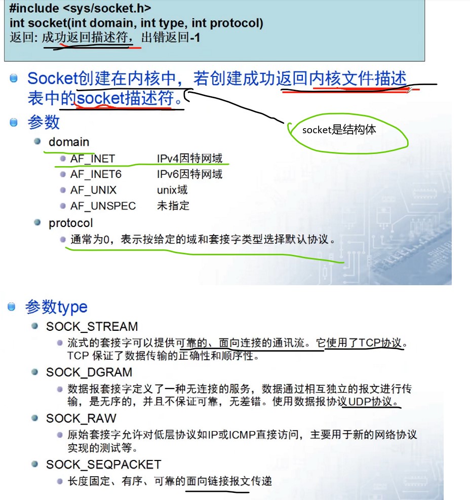 *1.创建socket(套接字)socket创建在内核中,是一个结构体