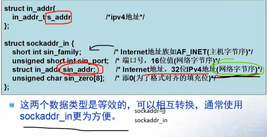 对地址端口信息等,先保存在sockaddr_in 中,在转为通用地址结构