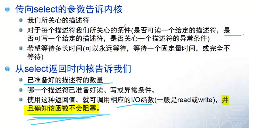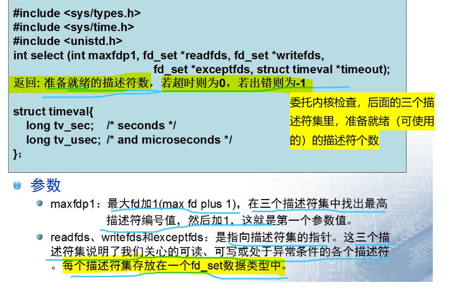 //调用select函数阻塞,委托内核检查传入的描述符集