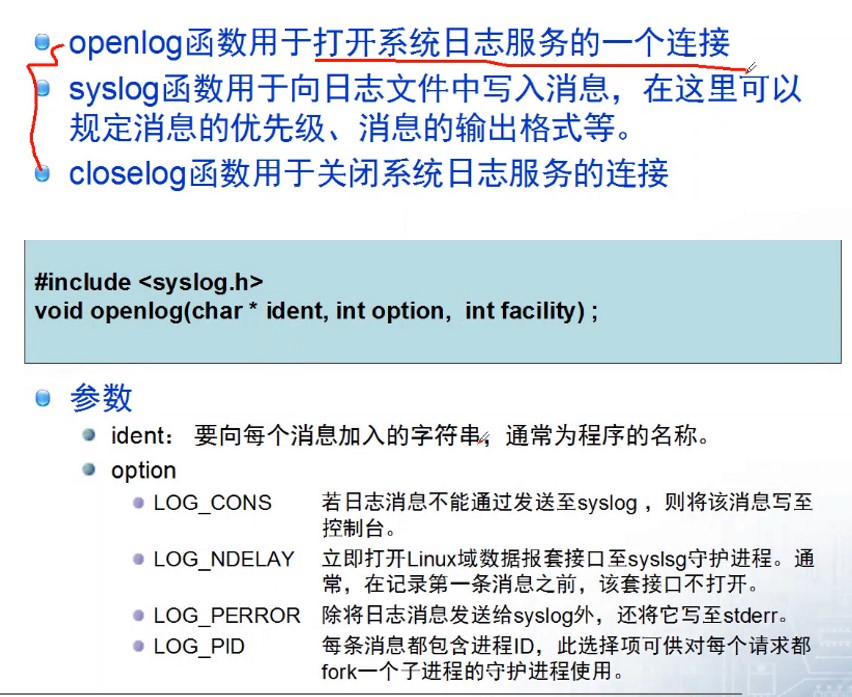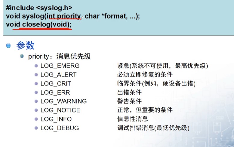 syslog(LOG_DEBUG,"fd:%s\n",strerror(errno));//将日志信息写入到系统日志文件中(/var/log/syslog)