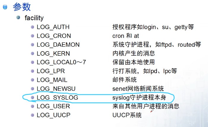 syslog(LOG_DEBUG,"listen:%s\n",strerror(errno));//将日志信息写入到系统日志文件中(/var/log/syslog)