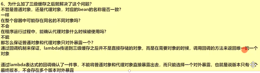 三级缓存,一级存的是成品对象(实例化和初始化),二级存的是半成品对象(只经过实例化),三级存的是lambda表达式。