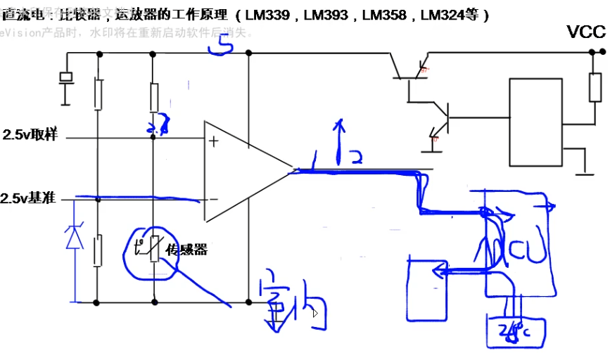 在直流电中-----运算放大器-------比较器--------比较后进行放大----记者-----提高灵敏度