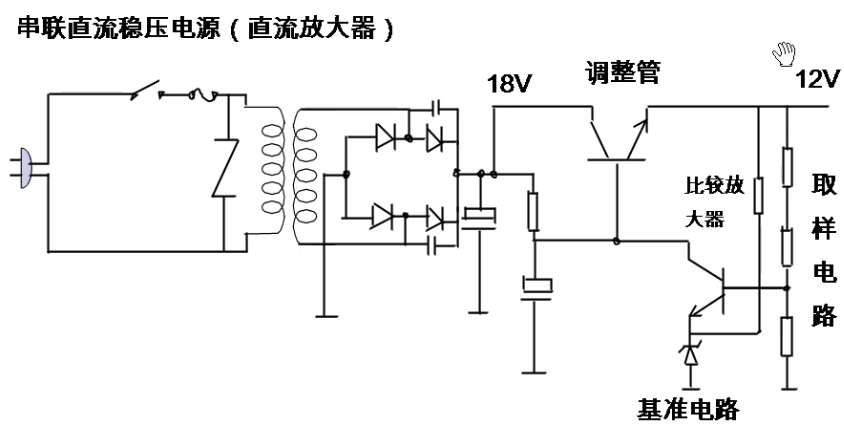 取样,基准,比较放大器---------稳压电源的必备要素--------所有三极管都工作在线性状态,处于放大状态----------