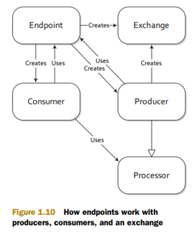 Endpoints:包含已创建的endpoints。Endpoint是camel的抽象概念。信道末端模型。系统可以利用信道收发消息。如下图: