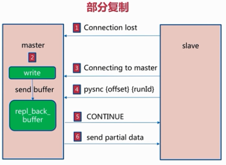 当master与slave之间的连接断开时,master在写入数据同时也会把写入的数据保存到repl_back_buffer复制缓冲区中