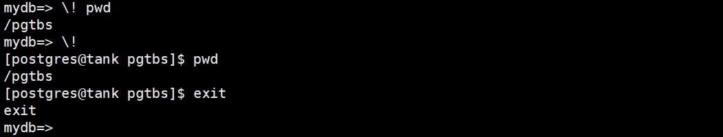 无参数时,转义到子shell;当子shell退出时,psql会恢复。